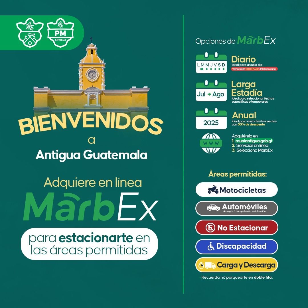El MarbEx (marbete digital de estacionamiento), moderniza el control en la vía pública al agilizar procesos, fortalecer la transparencia, reducir el uso de papel y permitir a los agentes verificar el pago mediante la lectura de placas. El sistema ofrece varias modalidades: MarbEx diario, de larga estadía, anual y el MarbEx Digital Anual gratuito para vecinos antigüeños.