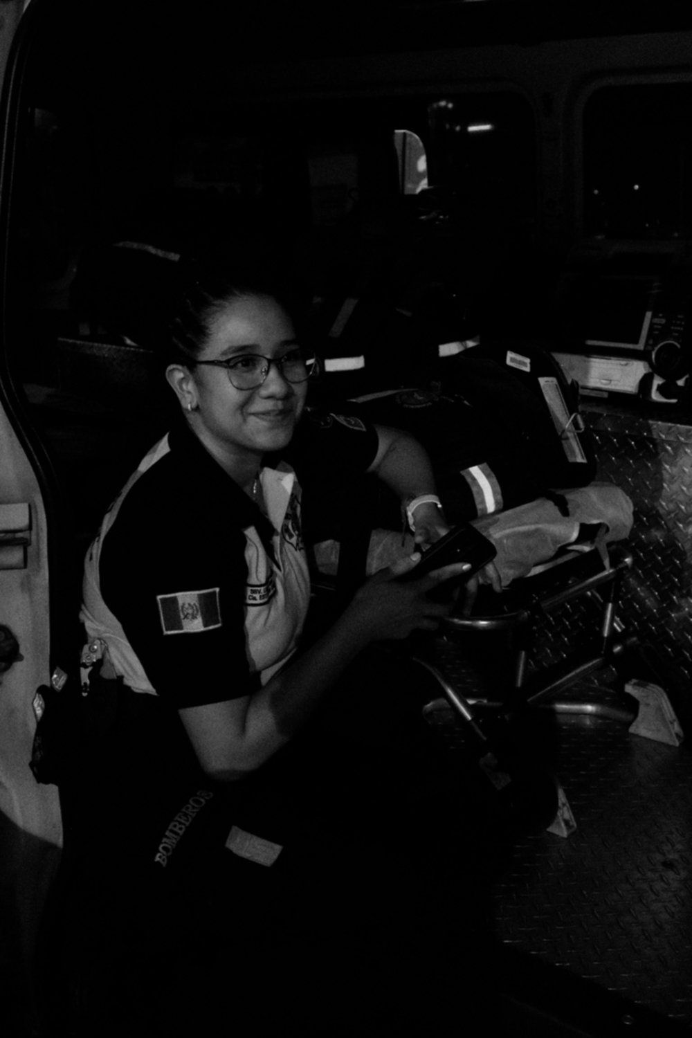Platiqué con Luisa, una estudiante de medicina de 25 años que decidió ser bombera antes que médica porque quería “ser médica de calle”. Explica que en un hospital hay luz, máquinas y personal; en la calle no hay nada de eso. Solo ellos, sus compañeros y lo que llevan encima: linterna, tijeras, guantes, navaja. Con ese equipo, que cabe en los bolsillos del uniforme, enfrentan lo desconocido.