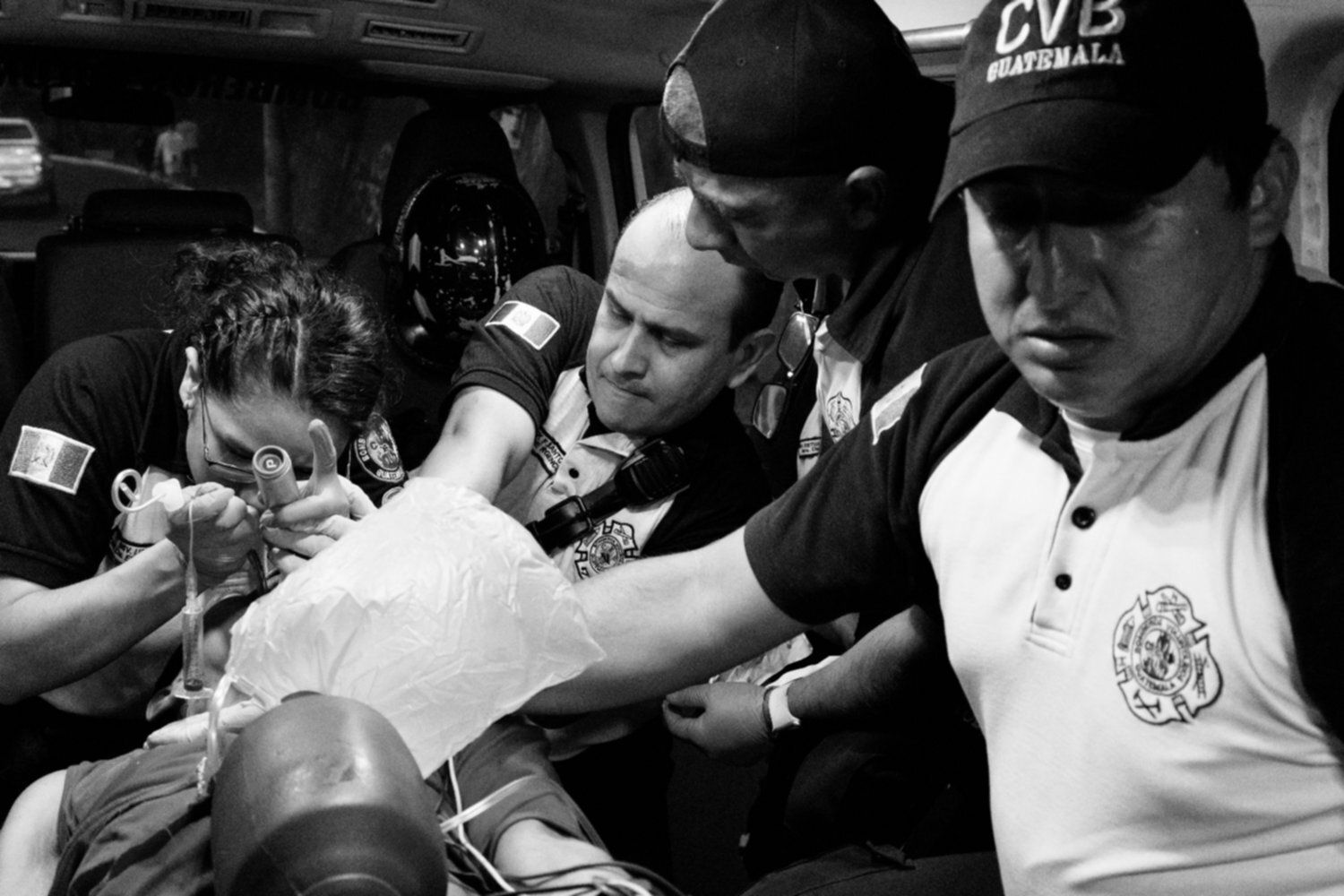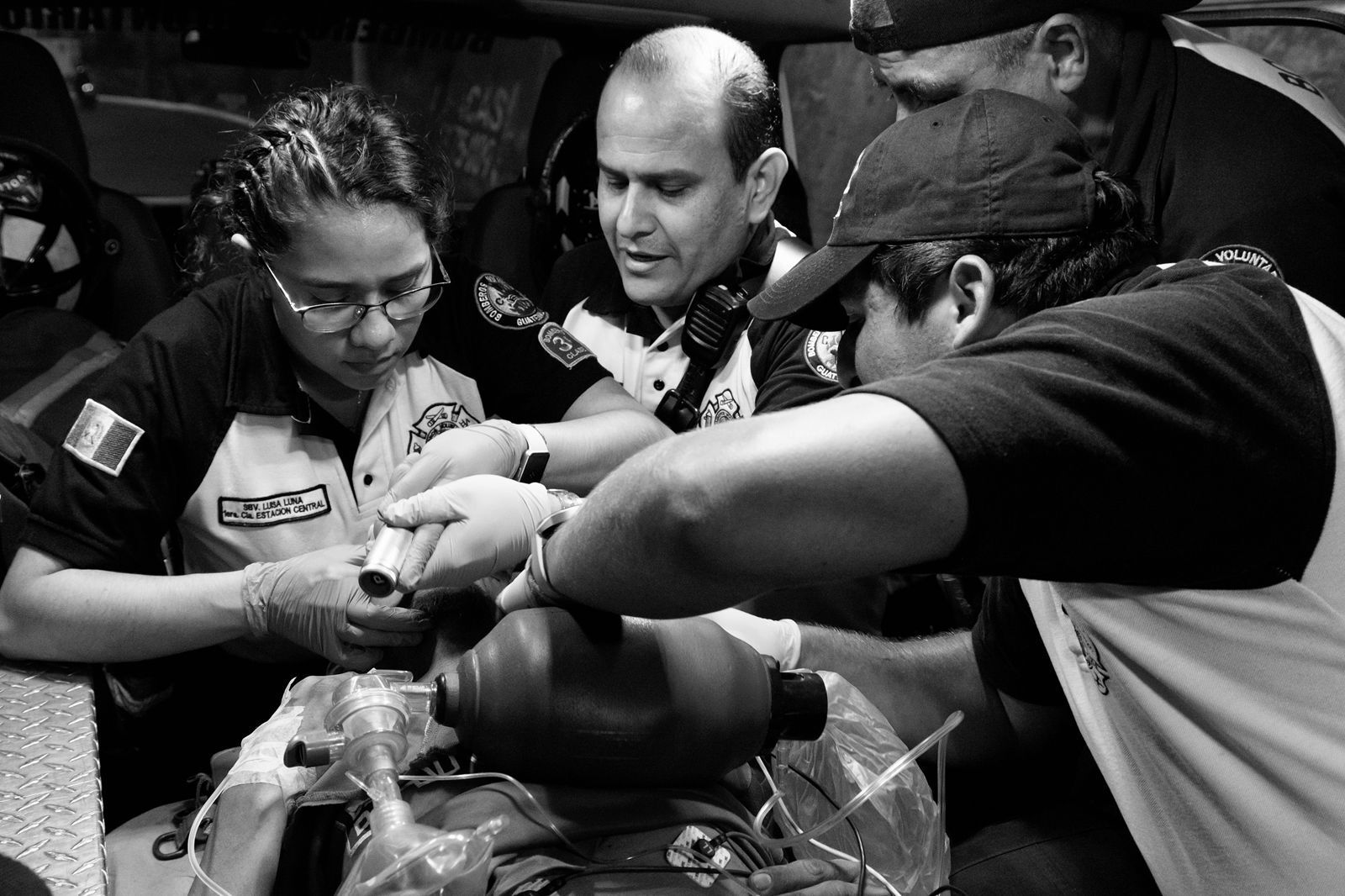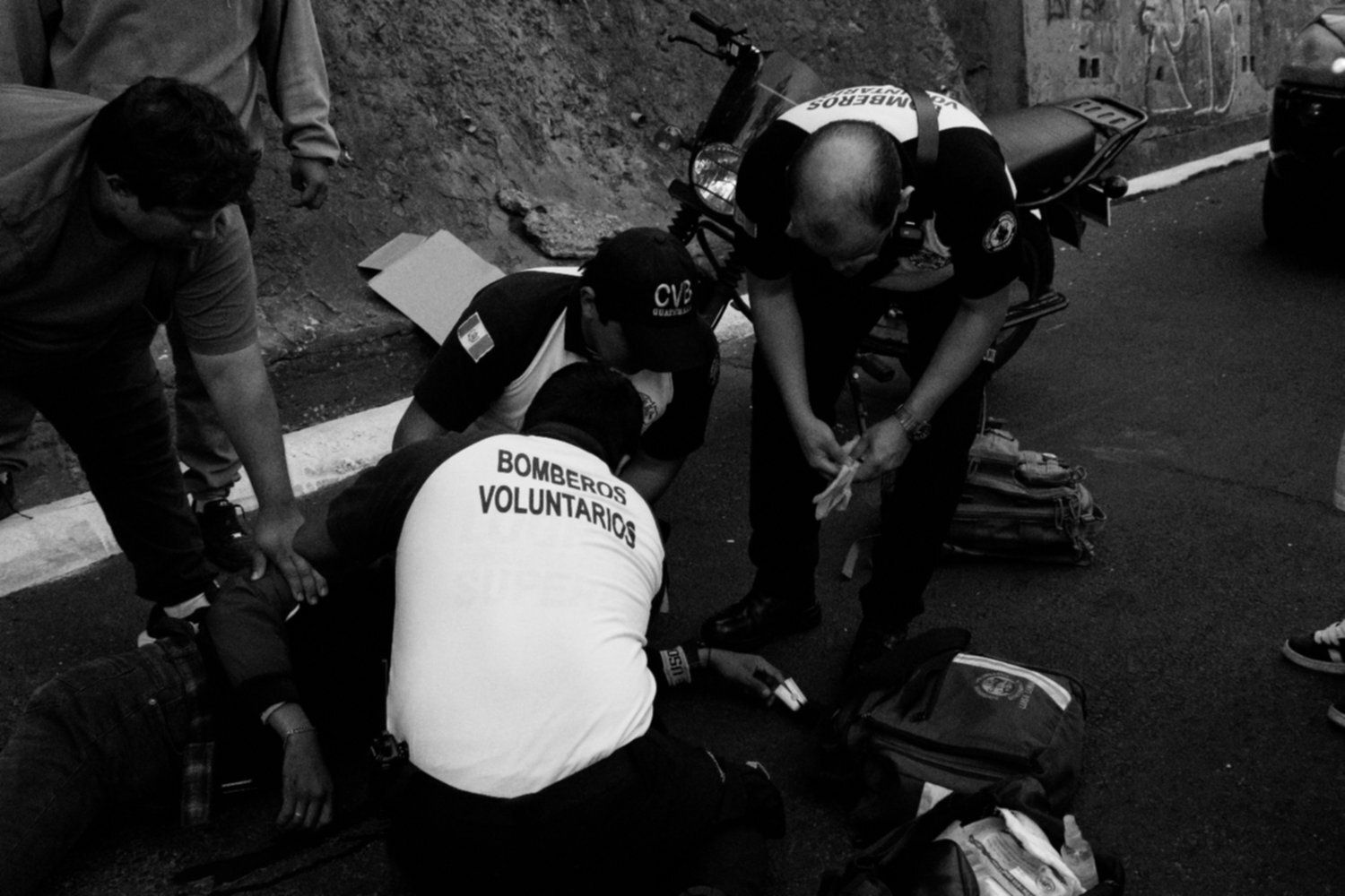 Suena otra alarma. Un accidente de moto que deja a una menor con un doblez en el pie. No importa la magnitud: ellos llegan. Más tarde, mi compañero fotógrafo compra la cena para todos. “A mí me ayudaron muchas personas. Yo también quiero ayudar de regreso”.