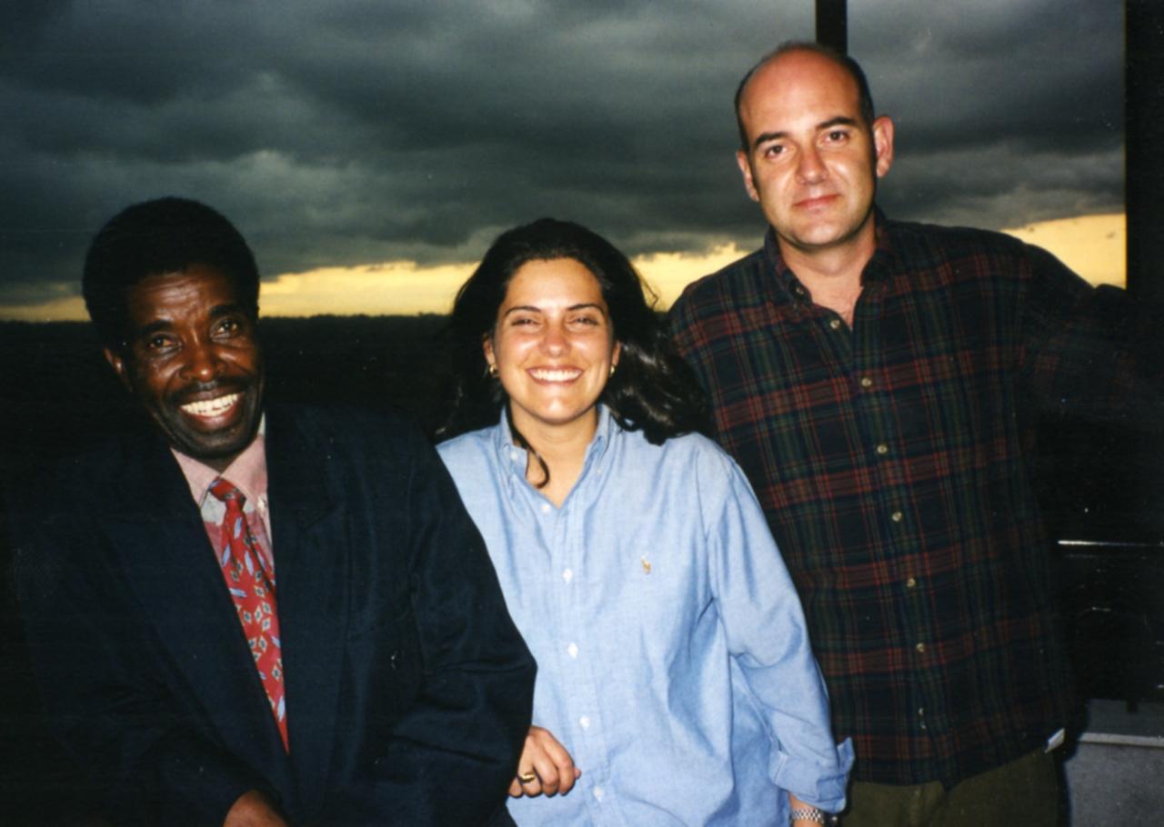 Con mi compañera Sandra y nuestro fotógrafo Lovemore.