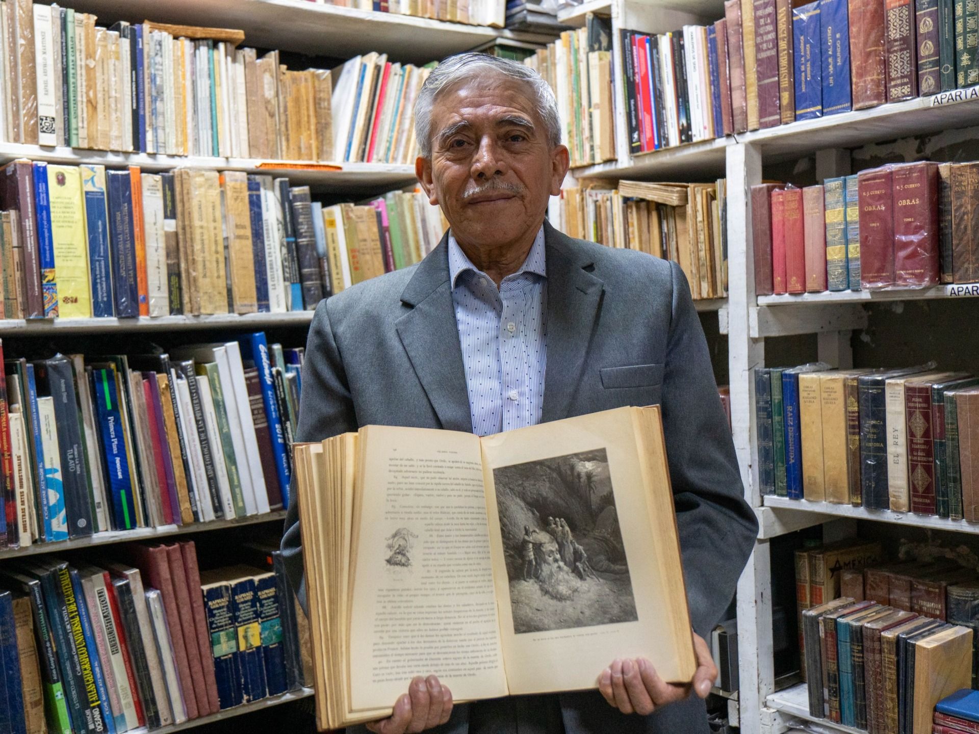 Reconoce que antes la demanda era mayor. En los años setenta y ochenta, los libros se vendían con rapidez. La exhibición en la calle atraía a curiosos. Aún conserva ediciones antiguas de gran calidad: colecciones de Aguilar, clásicos como Don Quijote, ilustraciones en blanco y negro y series completas sobre América. Para él, esos volúmenes muestran una época en que el libro era un objeto artístico.